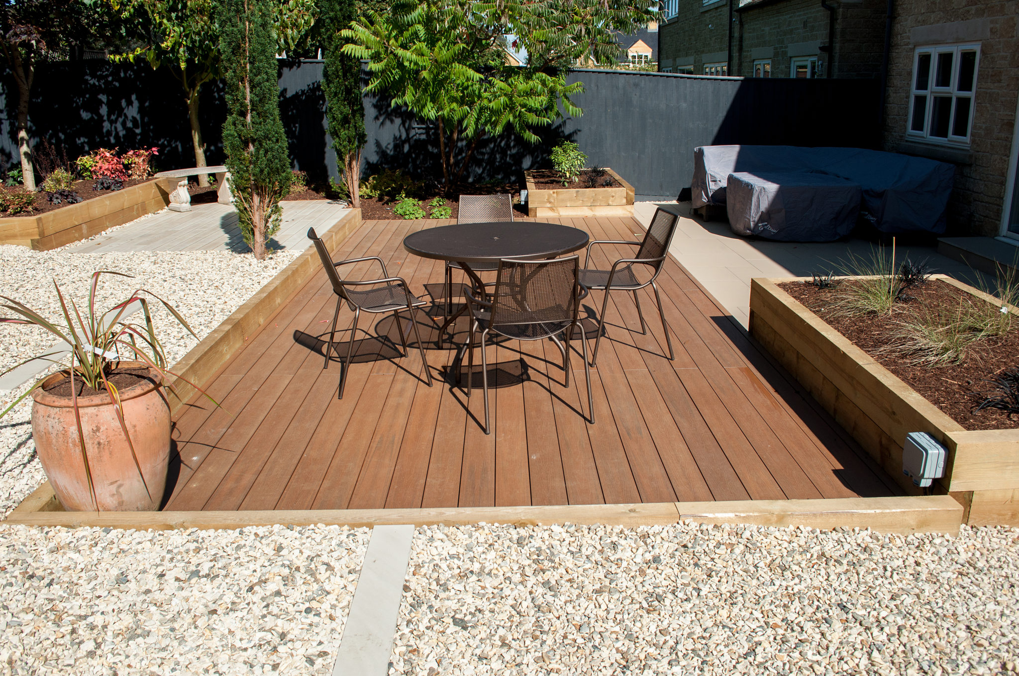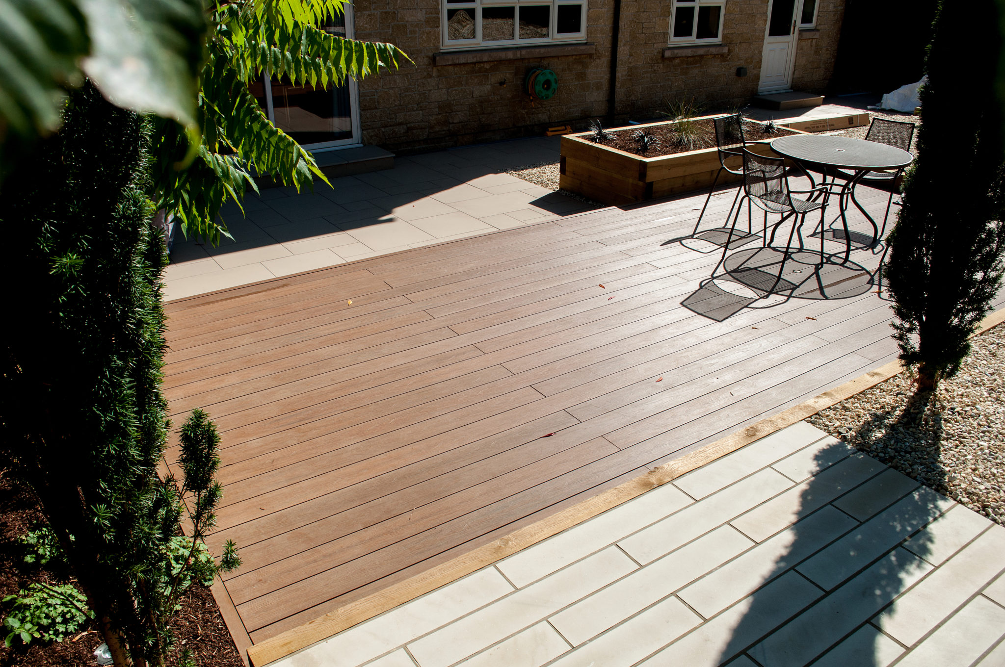 For those whom having a natural product is a priority but would prefer slightly less maintenance than standard softwood boards, hardwood decking is often the answer and falls somewhere in between softwood and composite boards in a care profile. Hardwood also has beautifully rich, warm tones which can be further enhanced by the use of decking oils. The main types used include Iroko, Yellow Balau, Teak and Cedar and the overall cost is often not too dissimilar to that of composite decking